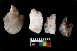 | Description / विवरण | There are n 4 ; worked utilized flakes; there are multidirectional irregular scar pattern on both dorsal and ventral face of the flakes. Two are tapering at one end. All are having sharp edges. |