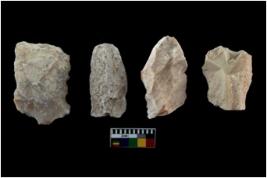 | Description / विवरण | There are n 4 of utilized worked cores and show irregular scar pattern on both dorsal and ventral side. Two have a broken tip. |