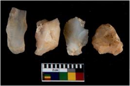 | Description / विवरण | There are n 4 utilized flake cores. There are multi directional irregular scar pattern on them. Two are tapering at one end and two have blunted edges. |