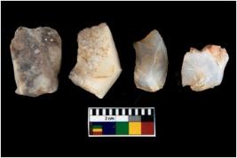 | Description / विवरण | There are n 4 utilized flake cores. There are multi directional irregular scar pattern on them. Two have flat base and two have blunted edges. |