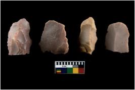 | Description / विवरण | There are n 4 of utilized worked cores and show irregular scar pattern on both dorsal and ventral side. One has a flat base. |