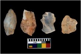 | Description / विवरण | There are n 4 utilized flake cores. There are multi directional irregular scar pattern on them. Two are tapering at one end and two have blunted edges. |