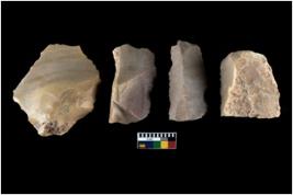 | Description / विवरण | There are n 4 of utilized worked cores and show irregular scar pattern on both dorsal and ventral side. They have sharp edges while one has a flat base. |