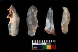 | Description / विवरण | There are n 4 Flake tool; There are multidirectional irregular scar pattern on them. few have blunt edges, Some of them are tapering at one end |