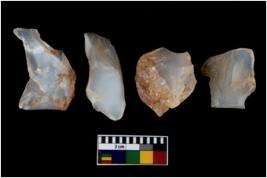 | Description / विवरण | There are n 4 utilized flake cores. There are multi directional irregular scar pattern on them. Two are tapering at one end and two have blunted edges. |