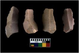 | Description / विवरण | There are n 4 of utilized worked cores and show irregular scar pattern on both dorsal and ventral side. Three have a broken tip. |
