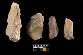 | Description / विवरण | There are n 4 of utilized worked cores and show irregular scar pattern on both dorsal and ventral side. They are tapeirng at one end. |