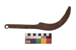 | Description / विवरण | Fragment of Iron Sickle. It is having thick curved semi circular body.It has sharp blade edge on inner side and thick outer edge. It is rusted in present condition. |