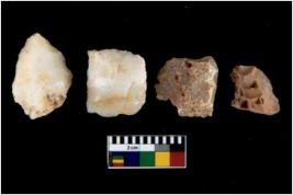 | Description / विवरण | There are n 4 utilized flake cores. There are multi directional irregular scar pattern on them. Three have blunted edges and one has round edge. |