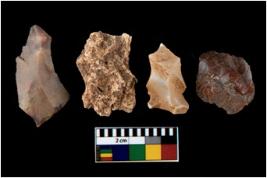 | Description / विवरण | There are n 4 utilized flake cores. There are multi directional irregular scar pattern on them. Two have sharp edge and two have blunted edges. |
