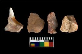 | Description / विवरण | There are n 4 utilized flake cores. There are multi directional irregular scar pattern on them. One is tapering at one end and three have blunted edges. |
