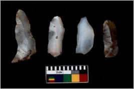 | Description / विवरण | There are n 4 Flake tool; There are multidirectional irregular scar pattern on them. few have blunt edges, Some of them are tapering at one end |