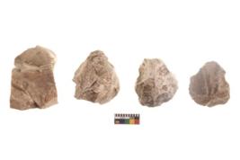 | Description / विवरण | There are n 4 of utilized worked cores and show irregular scar pattern on both dorsal and ventral side. Two have a flat base. |