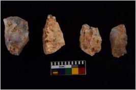 | Description / विवरण | There are n 4 flakes tool; there are flakes tool with prominent flaking marks. It made up of a large flakes with sides trimmed. It is rectangular in shape. |