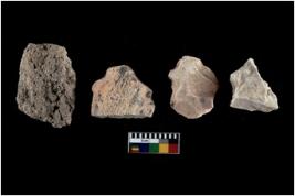 | Description / विवरण | There are n 4 of utilized worked cores and show irregular scar pattern on both dorsal and ventral side. One has a broken tip. |