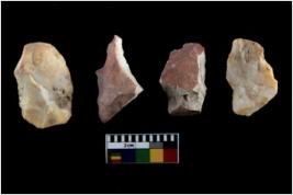 | Description / विवरण | There are n 4 of utilized worked cores and show irregular scar pattern on both dorsal and ventral side. Three are tapering at one end. |