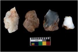 | Description / विवरण | There are n 4 ; worked utilized flakes; there are multidirectional irregular scar pattern on both dorsal and ventral face of the flakes. Two are tapering at one end. All are having sharp edges. |