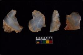 | Description / विवरण | There are n 4 flakes tool; there are large flakes with sides trimmed, Marks of secondary flaking are present on the both the faces. The dorsal is relatively flat. One is pointed functional top. |