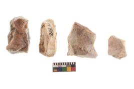 | Description / विवरण | There are n 4 of utilized worked cores and show irregular scar pattern on both dorsal and ventral side. Three have a broken tip. |