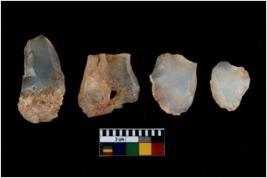 | Description / विवरण | There are n 4 utilized flake cores. There are multi directional irregular scar pattern on them. Two have flat base and two have blunted edges. |
