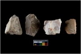 | Description / विवरण | There are n 4 of utilized worked cores and show irregular scar pattern on both dorsal and ventral side. Two have a broken tip. |