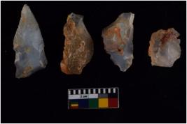 | Description / विवरण | There are n 4 flakes tool; there are flakes tool with prominent flaking marks. It made up of a large flakes with sides trimmed. It is rectangular in shaped. |