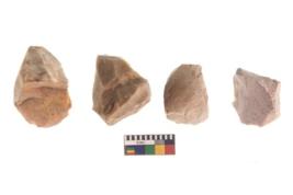 | Description / विवरण | There are n 4 of utilized worked cores and show irregular scar pattern. Three are tapering at one end. |