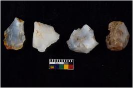 | Description / विवरण | There are n 4 cores; there are multidirectional irregular scar pattern on them. The flake scars are seen on all sides. |