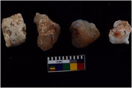 | Description / विवरण | There are n 4 flakes tool; there are flakes tool with prominent flaking marks. It made up of a large flakes with sides trimmed. It is rectangular in shaped. |
