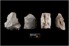| Description / विवरण | There are n 4 of utilized worked cores and show irregular scar pattern on both dorsal and ventral side. One has a broken tip. |