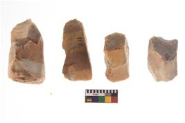 | Description / विवरण | There are n 4 of utilized worked cores and show irregular scar pattern on both dorsal and ventral side. Two are elongated in shape. |