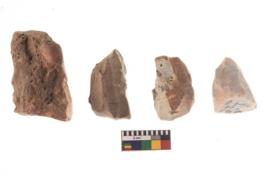 | Description / विवरण | There are n 4 of utilized worked cores and show irregular scar pattern on both dorsal and ventral side. Two have a broken tip. |