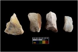 | Description / विवरण | There are n 4 of utilized worked cores and show irregular scar pattern on both dorsal and ventral side. One is tapering at one end. |