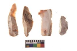 | Description / विवरण | There are n 4 of utilized worked cores and show irregular scar pattern on both dorsal and ventral side. Three are elongated in shape. |