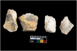 | Description / विवरण | There are n 4 of intact utilized worked cores; some of them have bulge of percussion and some are flat. |