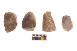 | Description / विवरण | There are n 4 of utilized worked cores and show irregular scar pattern on both dorsal and ventral side. Two have a flat base. |