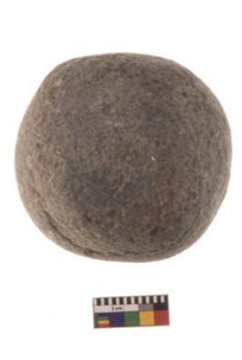 | Description / विवरण | Specimen of a roughly rounded shaped hammer stone with battered surface. |