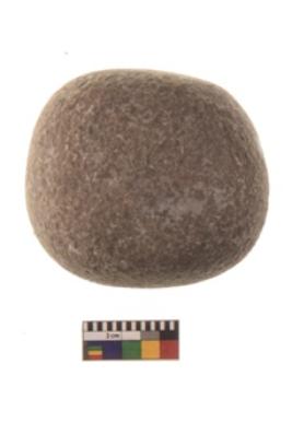 | Description / विवरण | Specimen of a roughly rounded shaped hammer stone with battered surface. |