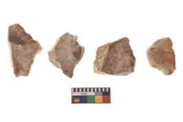 | Description / विवरण | There are n 4 of utilized worked cores and show irregular scar pattern on both dorsal and ventral side. Three are tapering at one end. |