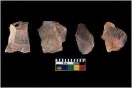 | Description / विवरण | There are n 4 of utilized worked cores and show irregular scar pattern. Two have a broken tip. |