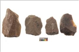 | Description / विवरण | There are n 4 flakes tool; there are multidirectional irregular scar pattern on them; made of short flakes and all four have tapering edges. |