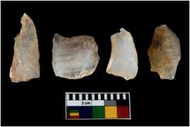 | Description / विवरण | There are n 4 utilized flake cores. There are multi directional irregular scar pattern on them. Two are tapering at one end and two have blunted edges. |