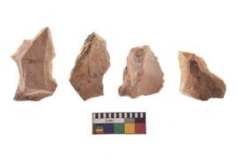| Description / विवरण | There are n 4 of utilized worked cores and show irregular scar pattern on both dorsal and ventral side. Three have a broken tip. |