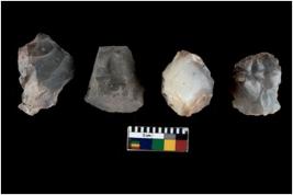 | Description / विवरण | There are n 4 of utilized worked cores and show irregular scar pattern on both dorsal and ventral side. Two have broken tip. |