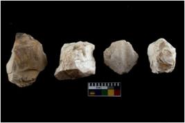 | Description / विवरण | There are 4 flake cores. All of them are fully fluted flake cores without any trace of crested ridge flakes. Some have flat base while few have round edges. |