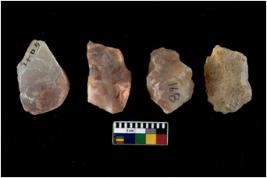 | Description / विवरण | There are n 4 of utilized worked cores and show irregular scar pattern on both dorsal and ventral side. They have sharp edges. |