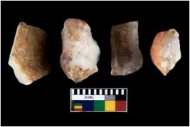 | Description / विवरण | There are n 4 utilized flake cores. There are multi directional irregular scar pattern on them. Two have blunted edges and two have round edges. |