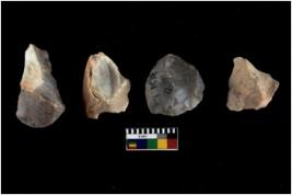 | Description / विवरण | There are n 4 of utilized worked cores and show irregular scar pattern on both dorsal and ventral side. Three are tapering at one end. |
