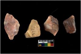 | Description / विवरण | There are n 4 of utilized worked cores and show irregular scar pattern. Two have a flat base. |