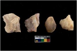| Description / विवरण | There are n 4 of utilized worked cores and show irregular scar pattern on both dorsal and ventral side. Three are tapering at one end. |